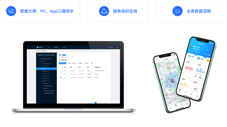 为养老服务的产业的所有从业者提供服务的产品、支持服务人员、政府街道社区管理人员、服务组织运营人员、社区站点、 社区食堂从业者提供服务的数字化产品。